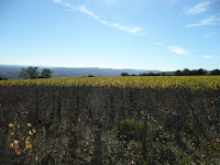 And the whole day's tasting has been undertaken beneath the clearest autumn skies, the brightest sunshine. Crossing from Meursault to Puligny I suddenly noticed a collection of dwellings higher up the slope and we quickly worked out that it must be the Hameau de Blagny, to which neither TB nor myself had ever been. Having some time on our hands, we pointed the car's nose upslope and drove through Blagny (where the meagre soils produce white wines of great class) and continued up and over the shoulder of the hill. From those heights I snapped off a few photographs, one of which can be seen above.