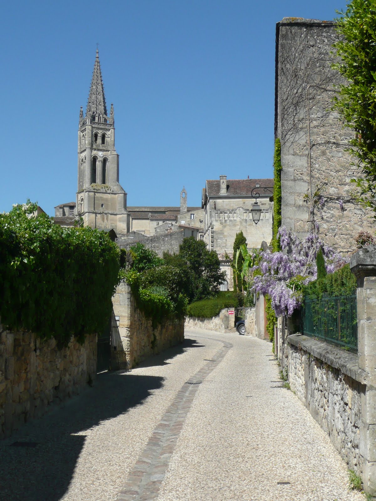 On the way to taste the wines of Jean-Luc Thunevin in a St Emilion side street. Note the Wistaria, which is adorning the facades of many a chateau at the moment