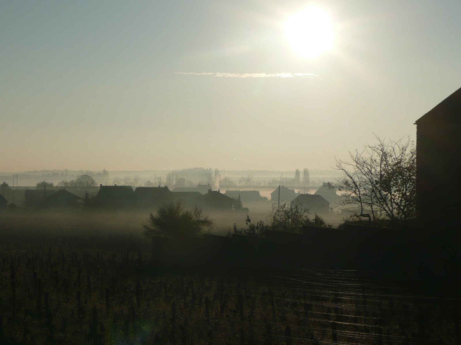 The morning dawned bright; cool, but not cold, with an easily-shifted film of ice on the windscreen of the car. A blast up the peage and we arrived in Vosne 10 minutes early, having the chance to stop and take photographs, to pilgrimage our way up to the grands crus for a snap or two.