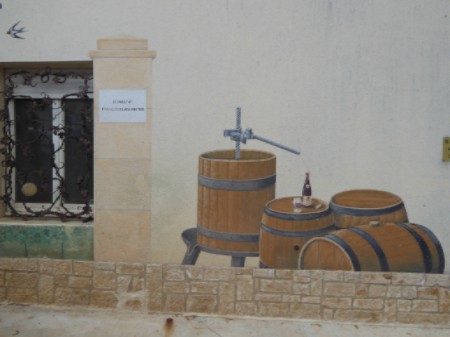 | Trompe l'oeil scene on the wall at the Domaine François Lamarche |